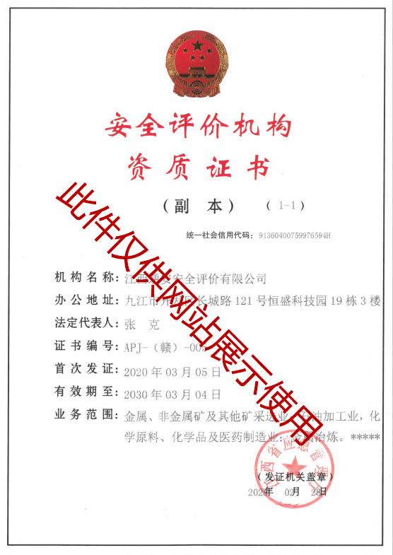 • 安全評價機(jī)構(gòu)資質(zhì)證書